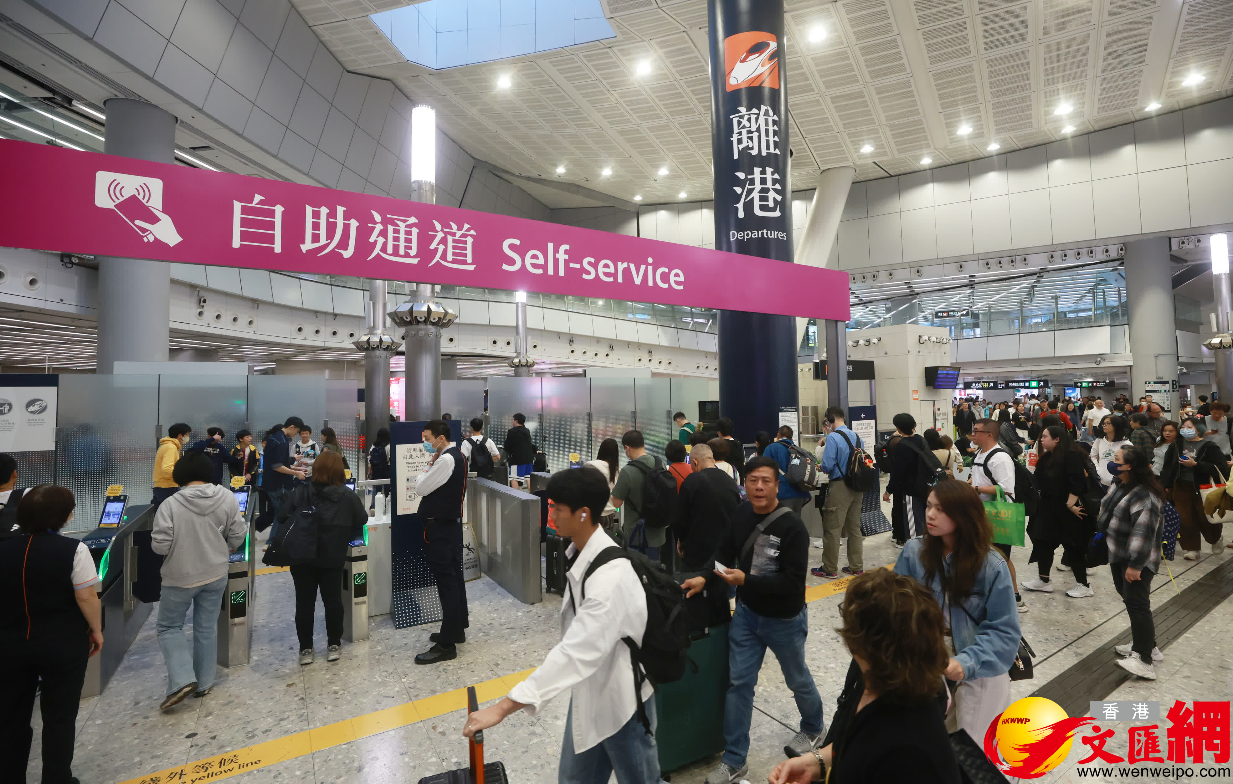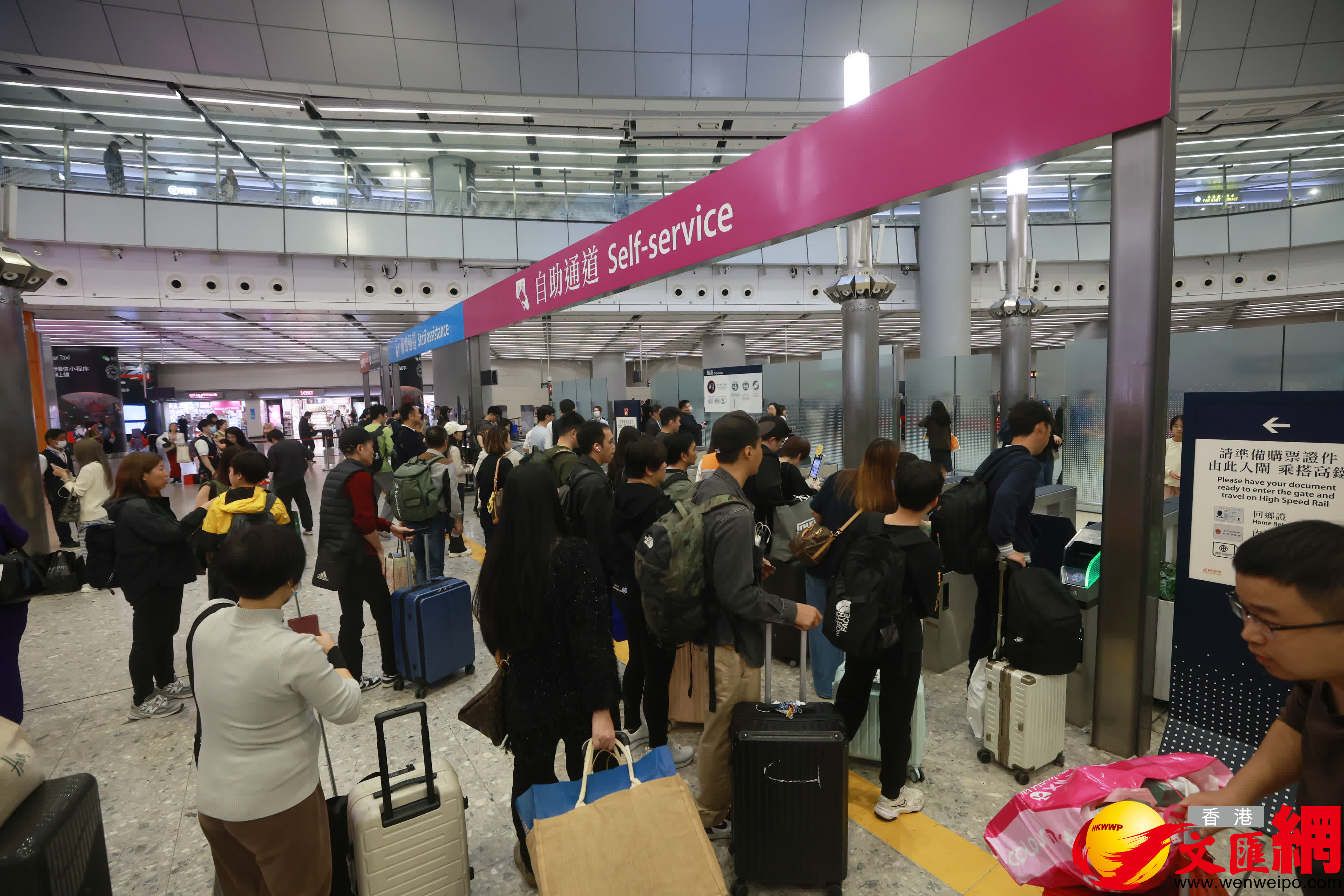 聖誕節連周末長假前(qian)夕,不少市(shi)民(mín)今日(ri)(24日(ri))離港外遊,高(gao)鐵西九龍站人(ren)頭湧湧,閘口位置一(yi)度出現人(ren)龍。(香港文(wén)匯報記者郭木(mù)又(yòu)攝)
